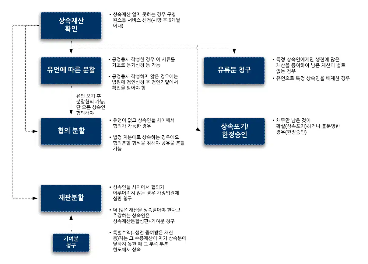 만약 유언에 따른 이후에도 남는 상속재산이(유언이 일부 상속재산에 대해서만 이루어졌다면) 있다면 협의 혹은 심판을 통한 상속재산 분할을 하게 됩니다.